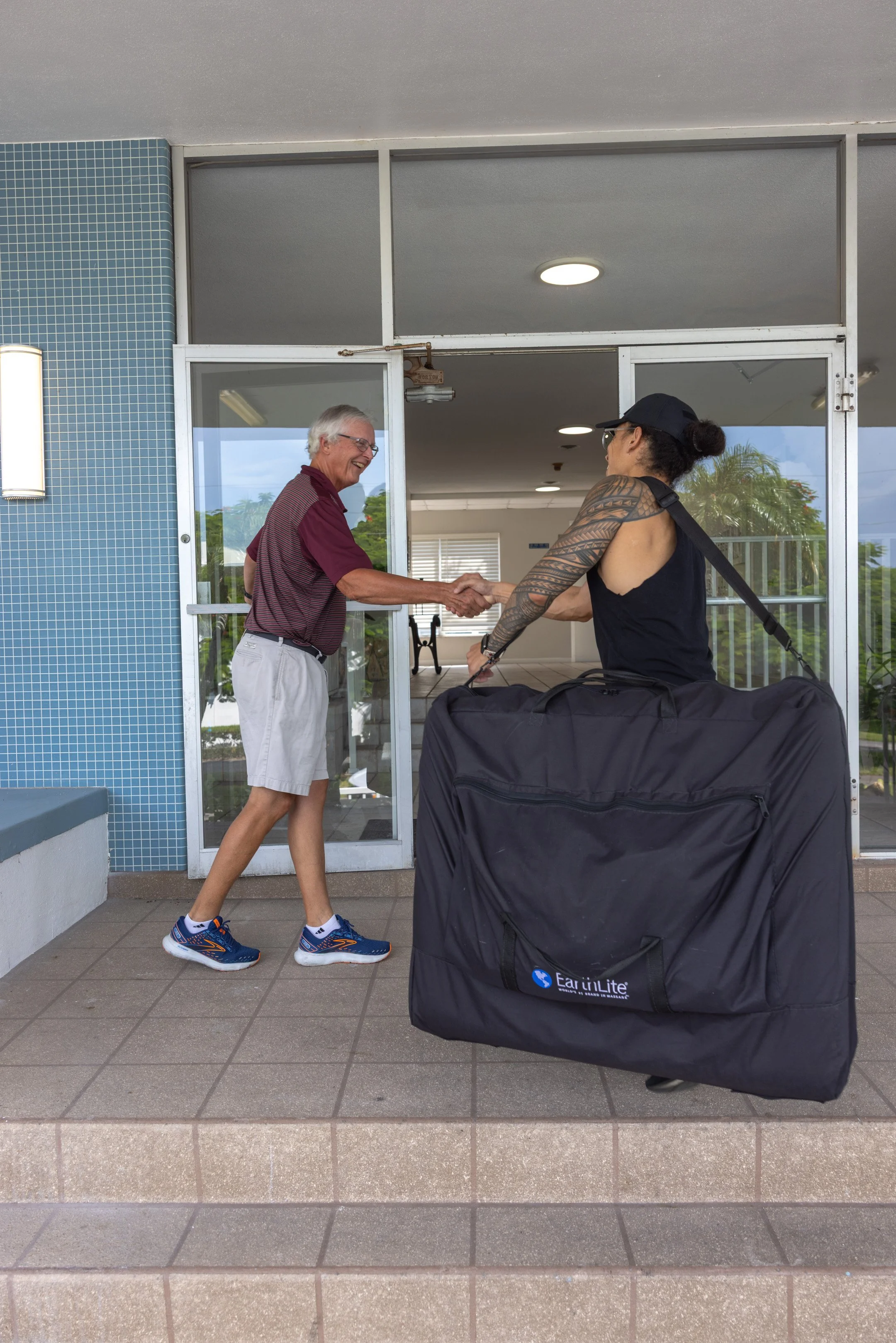 I bring everything needed for a full day of restorative wellness — the stretch table, equipment, and setup. Each participant gets a 25-minute one-on-one assisted stretch designed around their comfort and mobility needs.